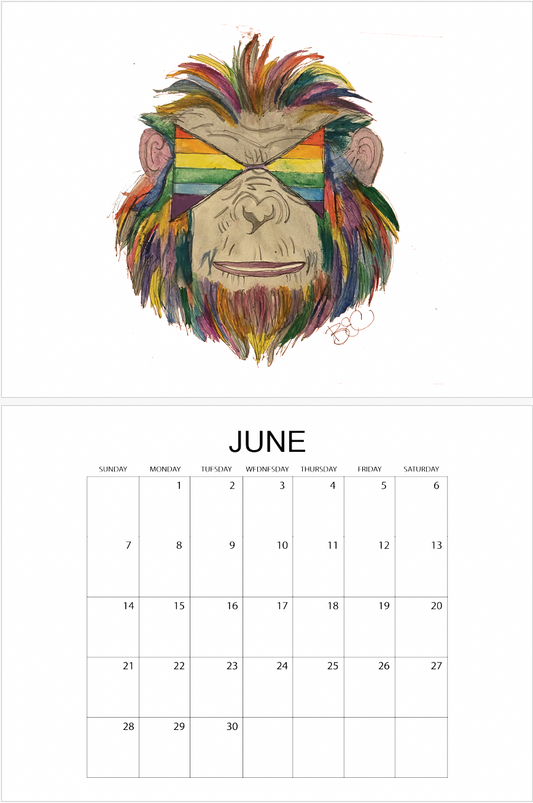 🌈 2026 Pride Flag Sunglasses Animals Watercolor Calendar | Whimsical Wall Art & Unique Gift